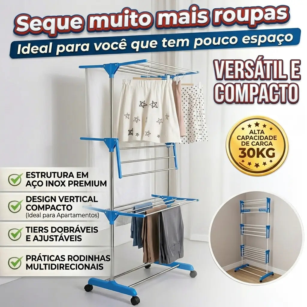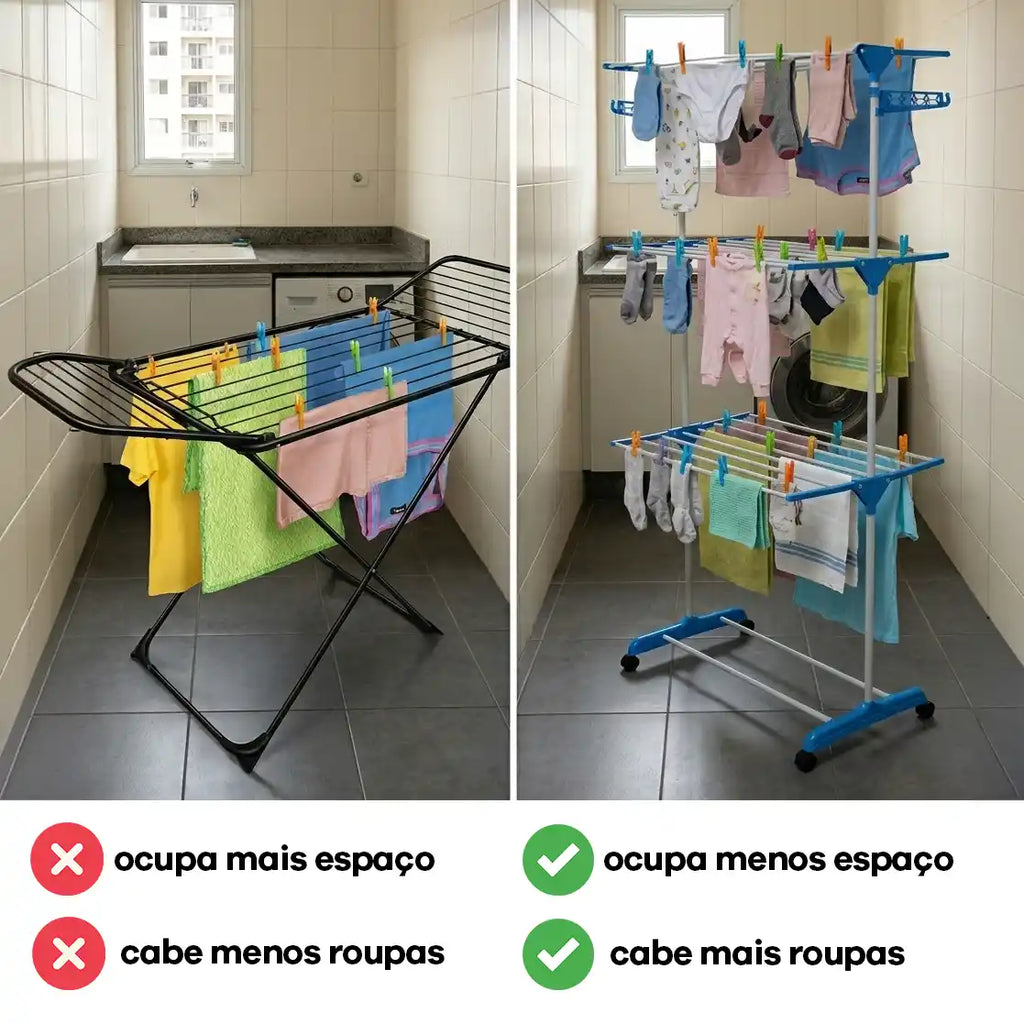 🧺 Mais espaço para secar roupas mesmo em lavanderias pequenas ou apartamentos