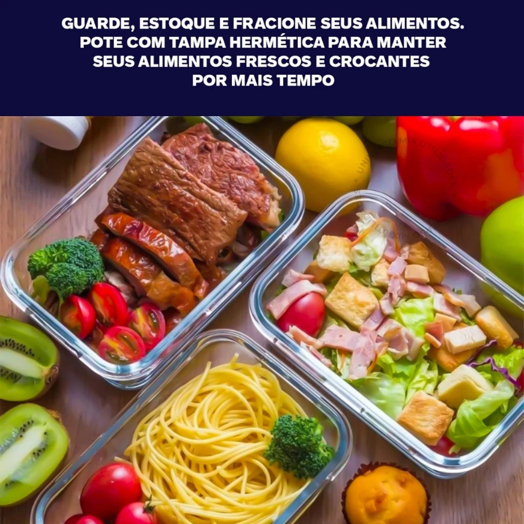 Os potes com tampas herméticas Click Glass são perfeitos para o dia a dia, garantem o melhor sabor, não ficam com cheiro indesejado e você pode esquentar no microondas ou forno.