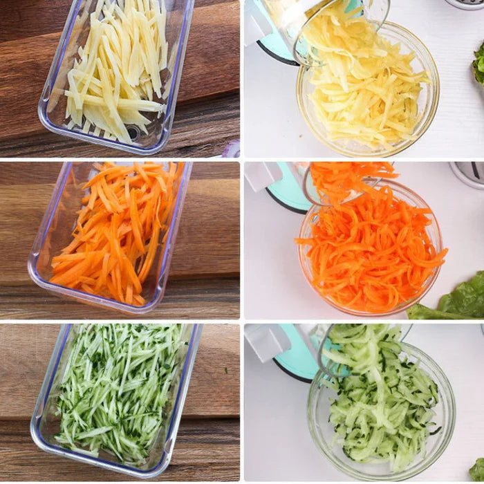 Lâmina fatiadora: Permite fatiar legumes como batata, pepino, cenoura, abobrinha ou o que mais precisar para compor suas saladas, chips e pratos vegetais.