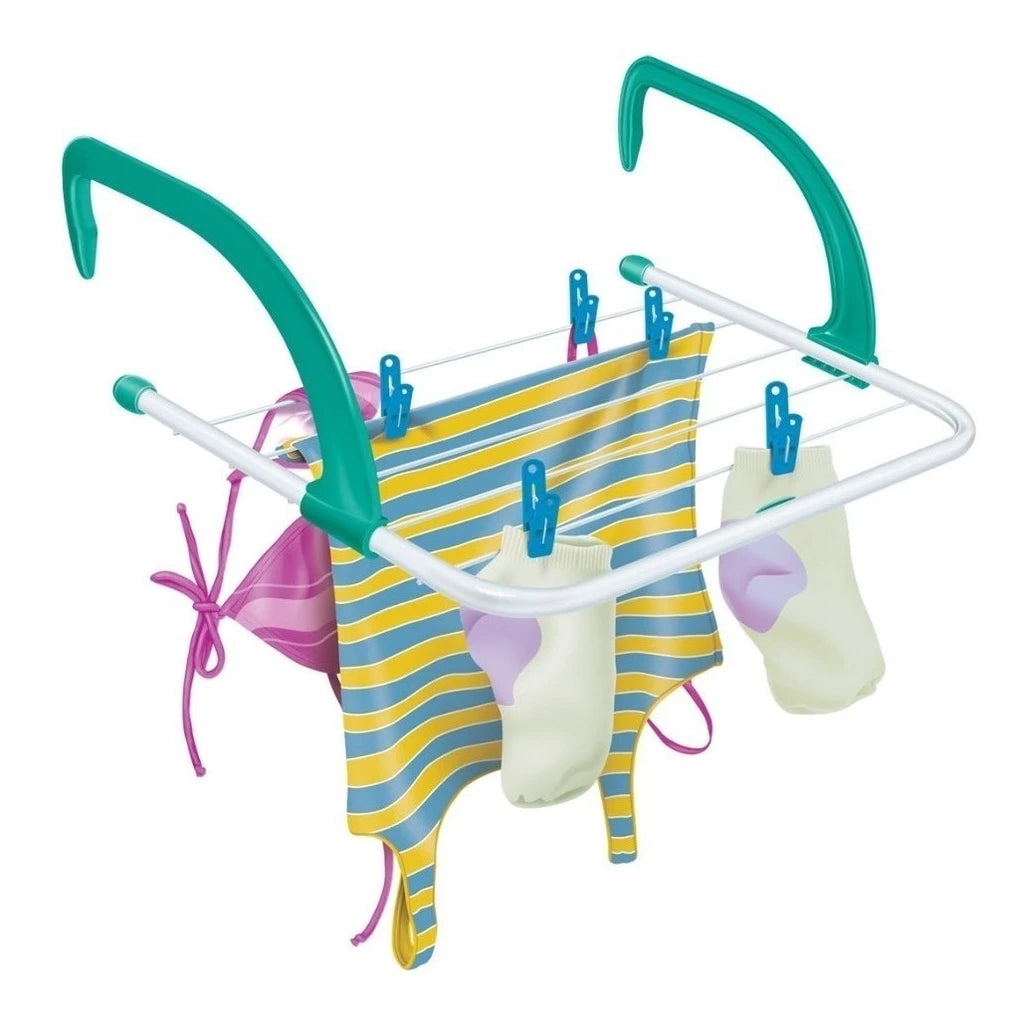 O varal portátil é perfeito para quem quer economizar espaço, sendo ideal para apartamentos e pequenas lavanderias. É de fácil aplicação e possui extensão flexível.